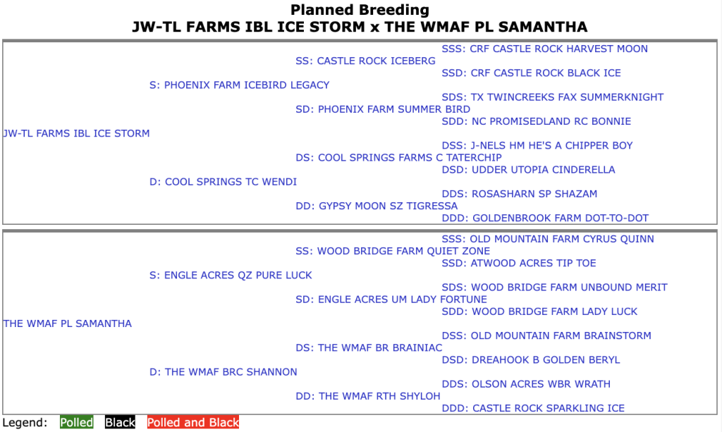 Sire: JW-TL Farms IBL Ice Storm EX90 2xGCH, 1xBOB